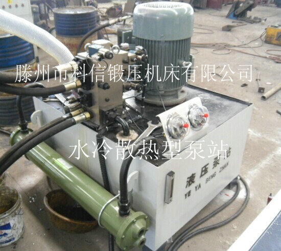 4.3液壓泵站由油箱、高壓泵、電動(dòng)機(jī)、插裝閥等組成,油箱系鋼板焊接。油箱采用封閉式油箱,設(shè)有放油塞,使清潔換油方便。油泵吸油口裝有吸油濾清器,確保油的清潔度,保證油泵和閥的使用壽命,泵站帶有水冷散熱。